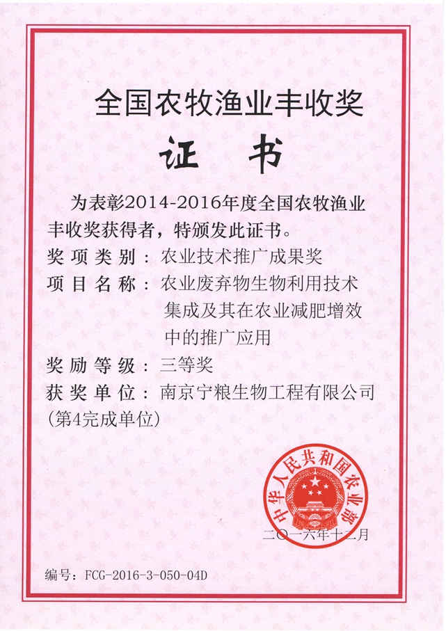 南京寧糧生物工程有限公司(以下簡稱“公司”)是專業(yè)從事農(nóng)用微生物菌劑、有機(jī)(類)肥料、復(fù)合微生物肥料、水溶肥料、土壤調(diào)理劑、重金屬葉面阻控劑等產(chǎn)品的研發(fā)、生產(chǎn)、銷售和服務(wù)的高新技術(shù)企業(yè)。公司占地200余畝。 公司擁有先進(jìn)的生產(chǎn)、檢測設(shè)備與管理規(guī)范的生產(chǎn)基地。與南京農(nóng)業(yè)大學(xué)、江蘇省農(nóng)業(yè)科學(xué)院、中科院南京土壤研究所等科研院校建立了緊密的產(chǎn)學(xué)研合作關(guān)系,在南京農(nóng)業(yè)大學(xué)和江蘇省農(nóng)科院設(shè)有“寧糧”獎(jiǎng)學(xué)金、獎(jiǎng)教金和獎(jiǎng)勵(lì)基金;擁有多個(gè)研發(fā)平臺并建有江蘇省研究生工作站;聘請了多位科研院校的教授專家為公司的技術(shù)顧問和技術(shù)指導(dǎo)。公司現(xiàn)已是中國有機(jī)(類)肥料生產(chǎn)技術(shù)創(chuàng)新戰(zhàn)略聯(lián)盟核心企業(yè)、江蘇高校協(xié)同創(chuàng)新中心有機(jī)固...
